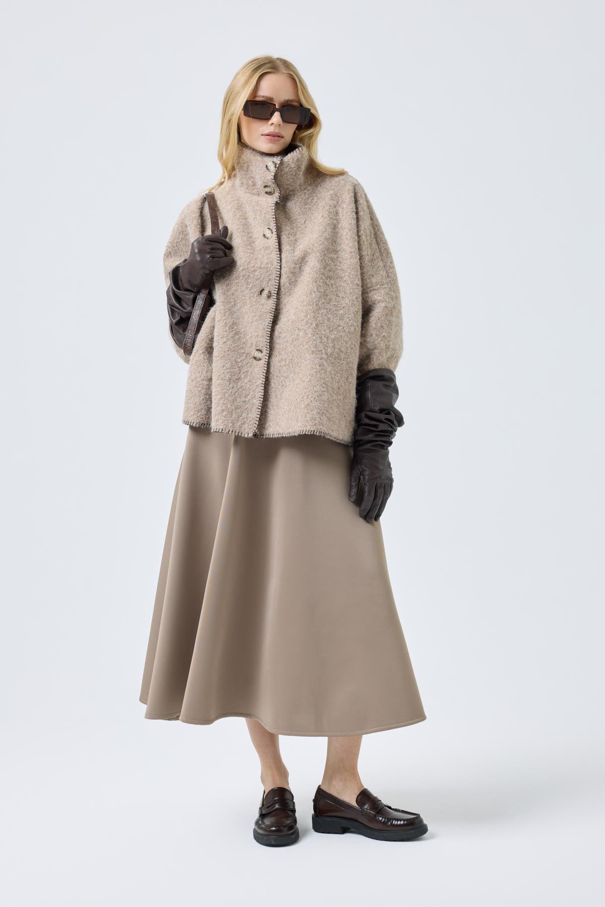 ÜRÜN ÖLÇÜLERİ: S(36/38) M(40/42). Boy: 65m. Kol Boy : 35 cm.(Düşük omuz)