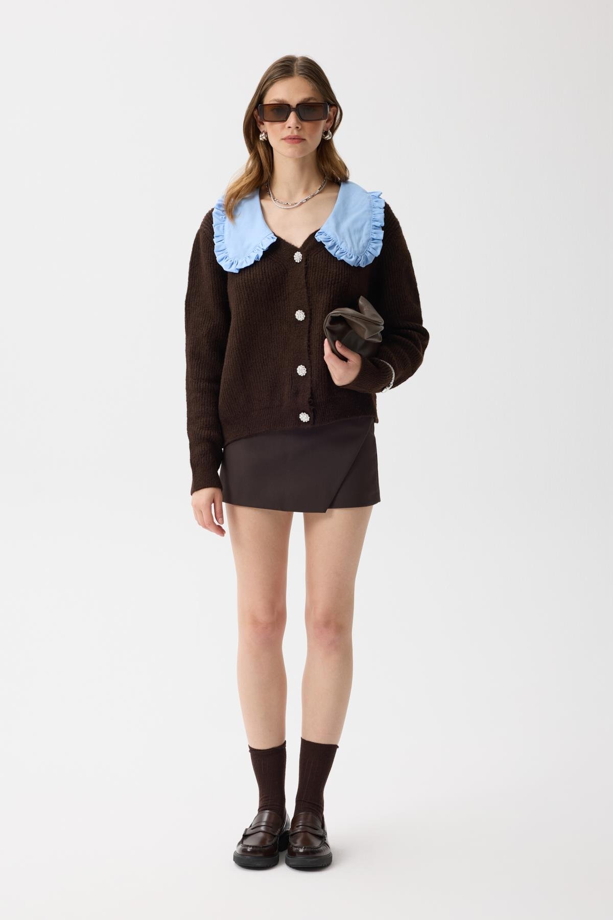 Bianca Bebe Yaka Hırka, diğer trikolardan farklı olarak bebe yaka poplin garnisi ile kumaş kombinasyonu sevenler için tasarlandı. Jean pantolonlarla ya da etekler ile kombinleyebilirsin.