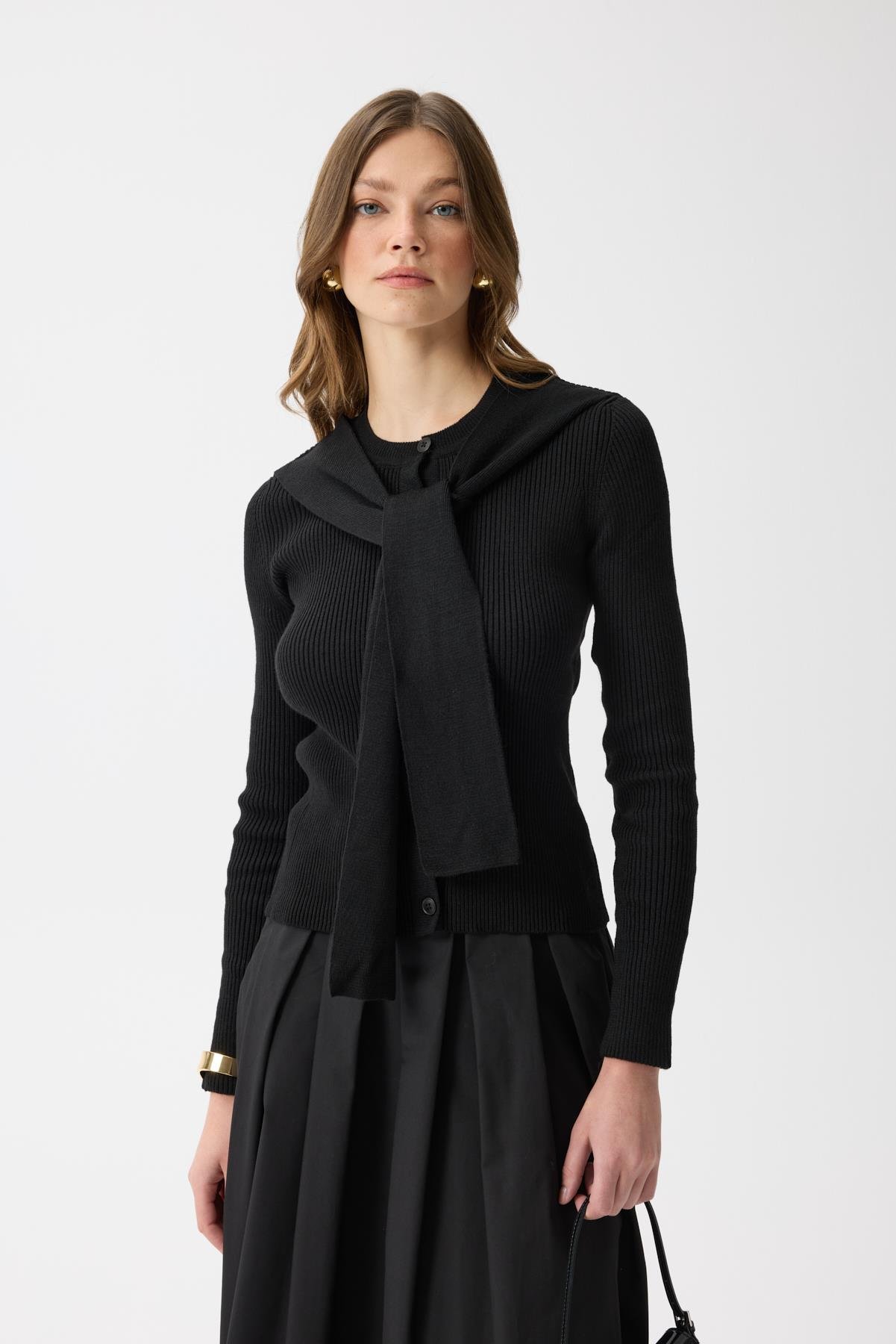 Clemence Atkılı Fitilli Hırka, atkı detayı ile cool görünüm sağlayıp fitilli dokusu ile daha fit görünüm sağlar. İster gömlek üstüne aksesuar olarak kombinleyebilirsin.