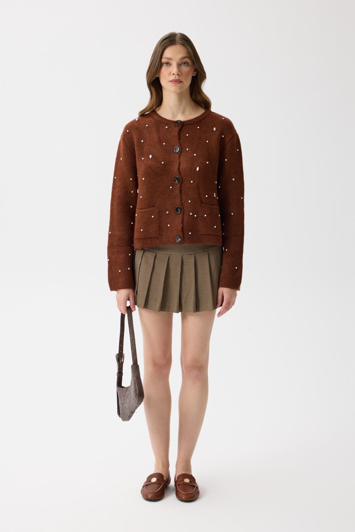 Alaia Taş İşlemeli Cepli Hırka - Kahverengi