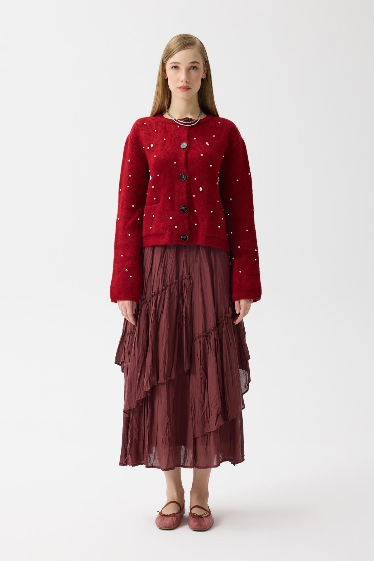Alaia Taş İşlemeli Cepli Hırka - Kırmızı