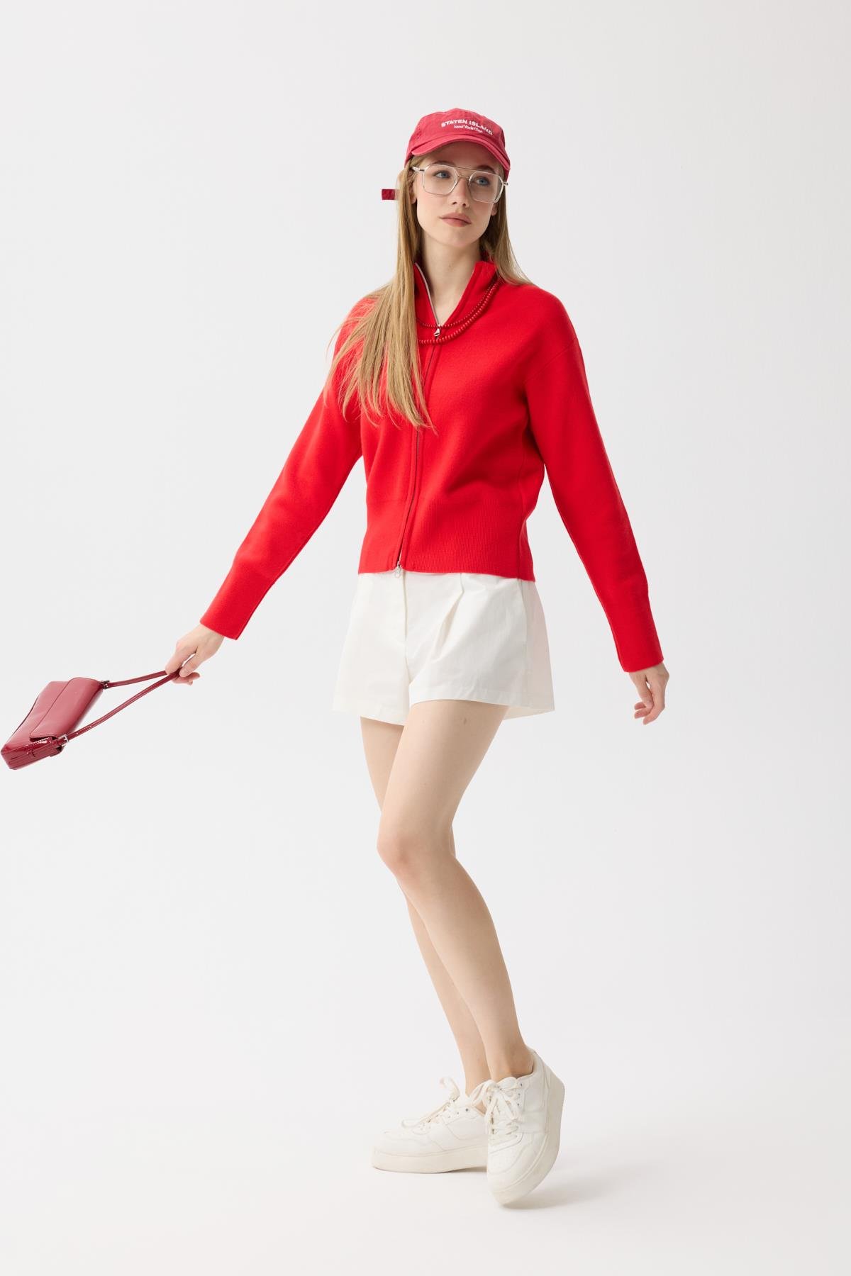 Blanche Yüksek Yaka Hırka - Kırmızı