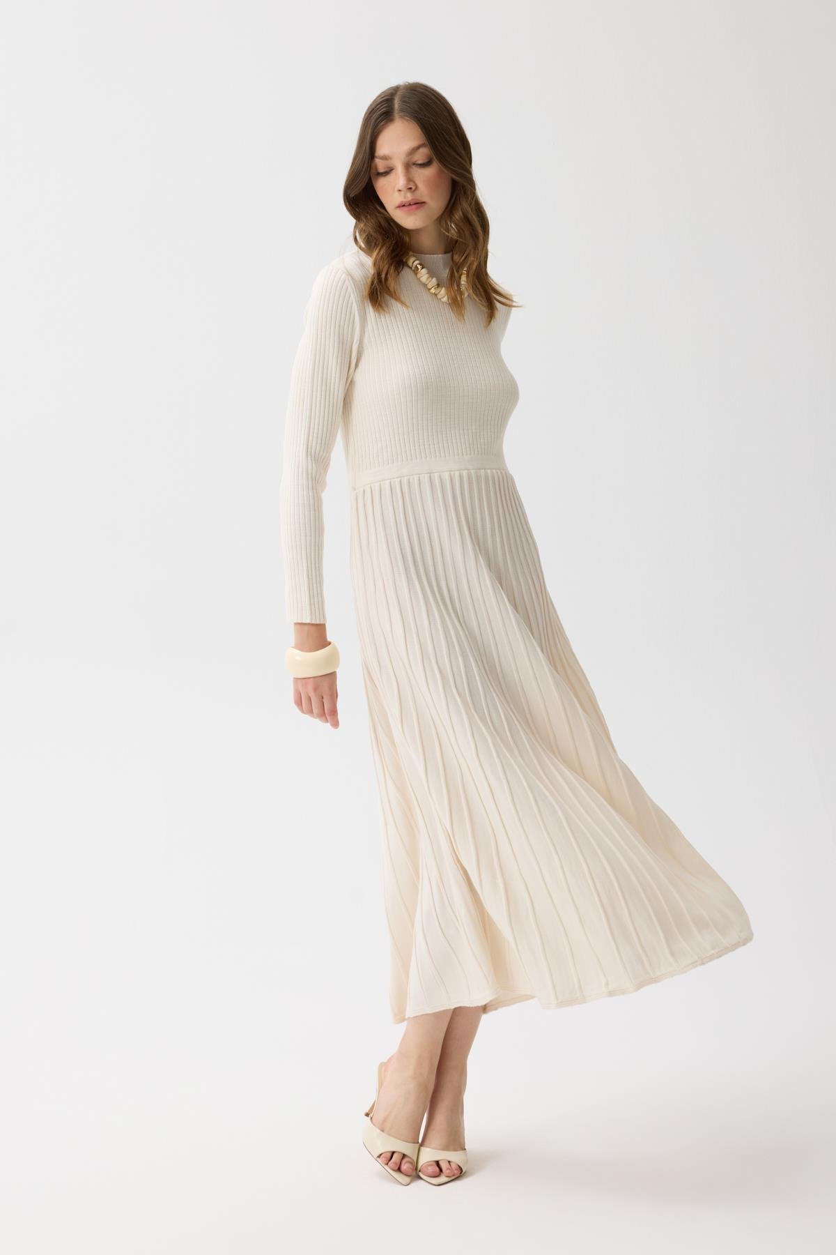 Mabel Pilise Detaylı Fitilli Elbise - Ekru
