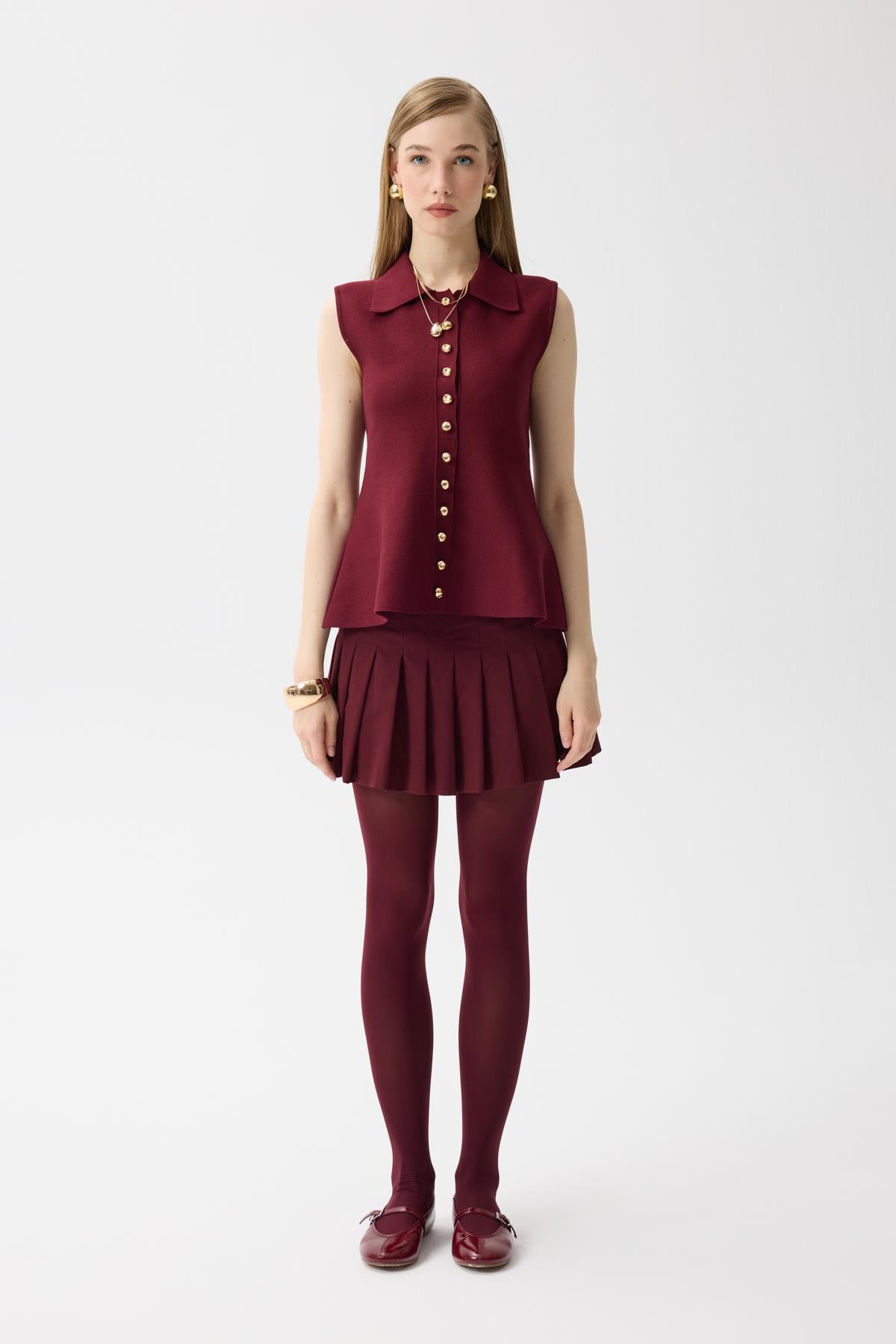 Harper Çelik Örme Düğmeli Yelek - Bordo