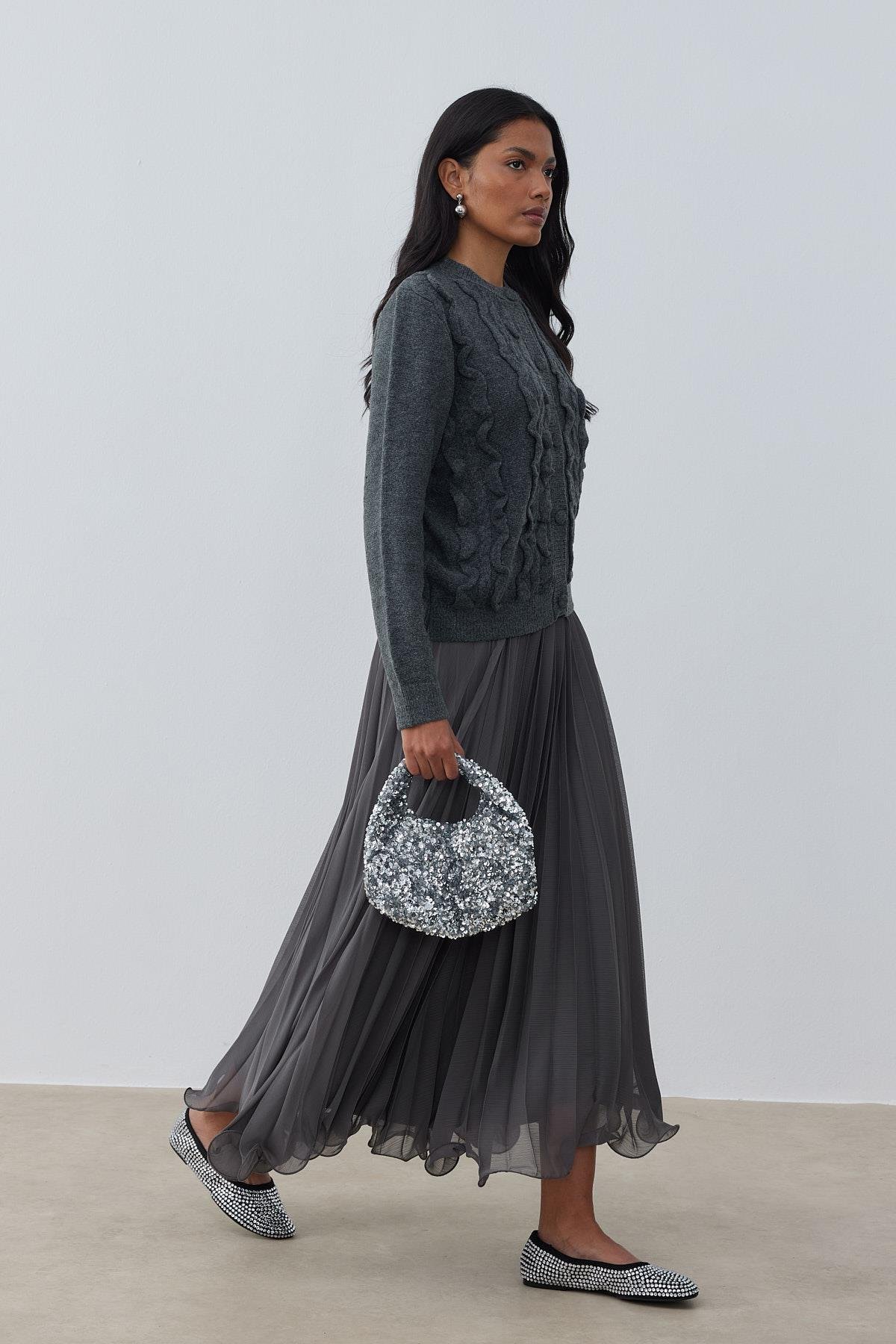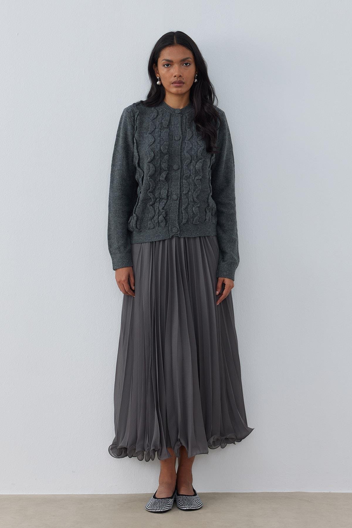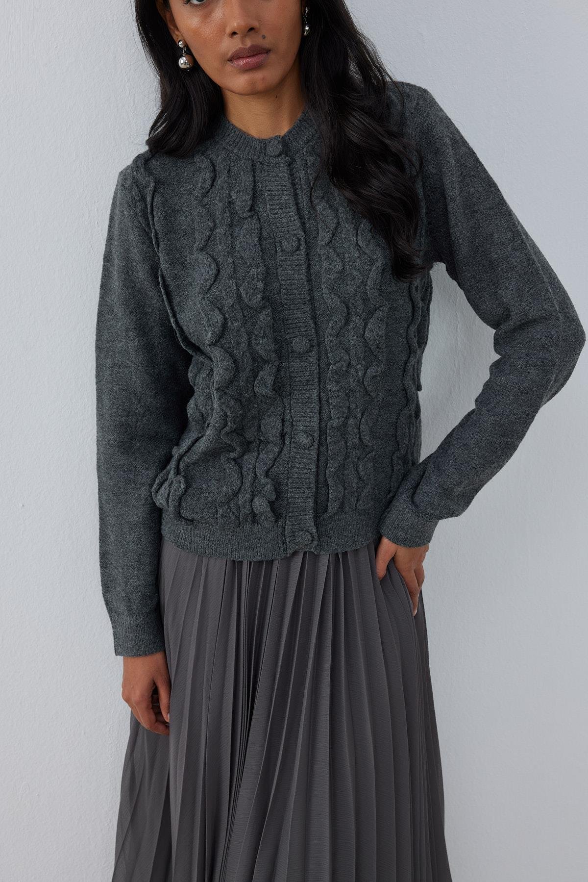 Katya Kabartma Motifli Hırka-Antrasit
