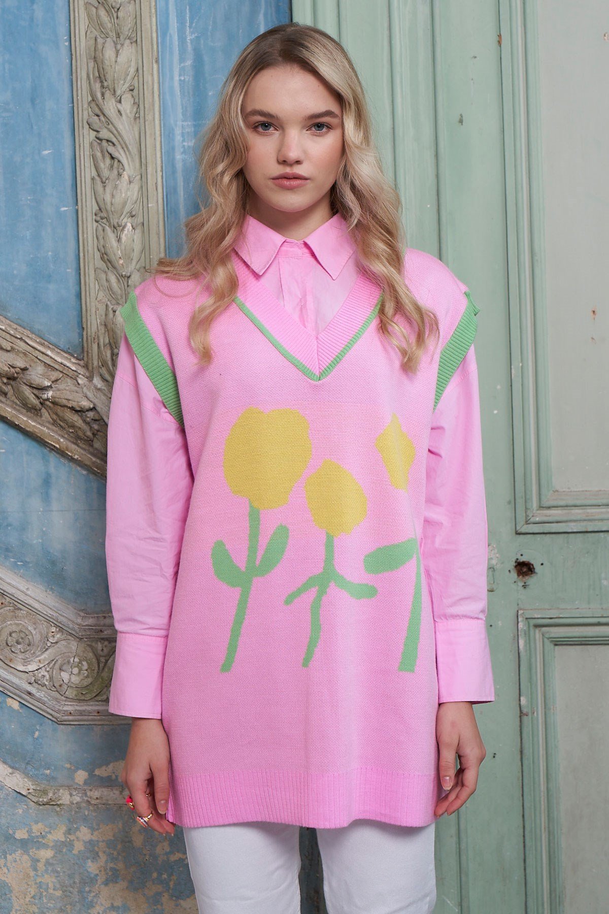 Melisa Çiçekli Süveter - Pembe