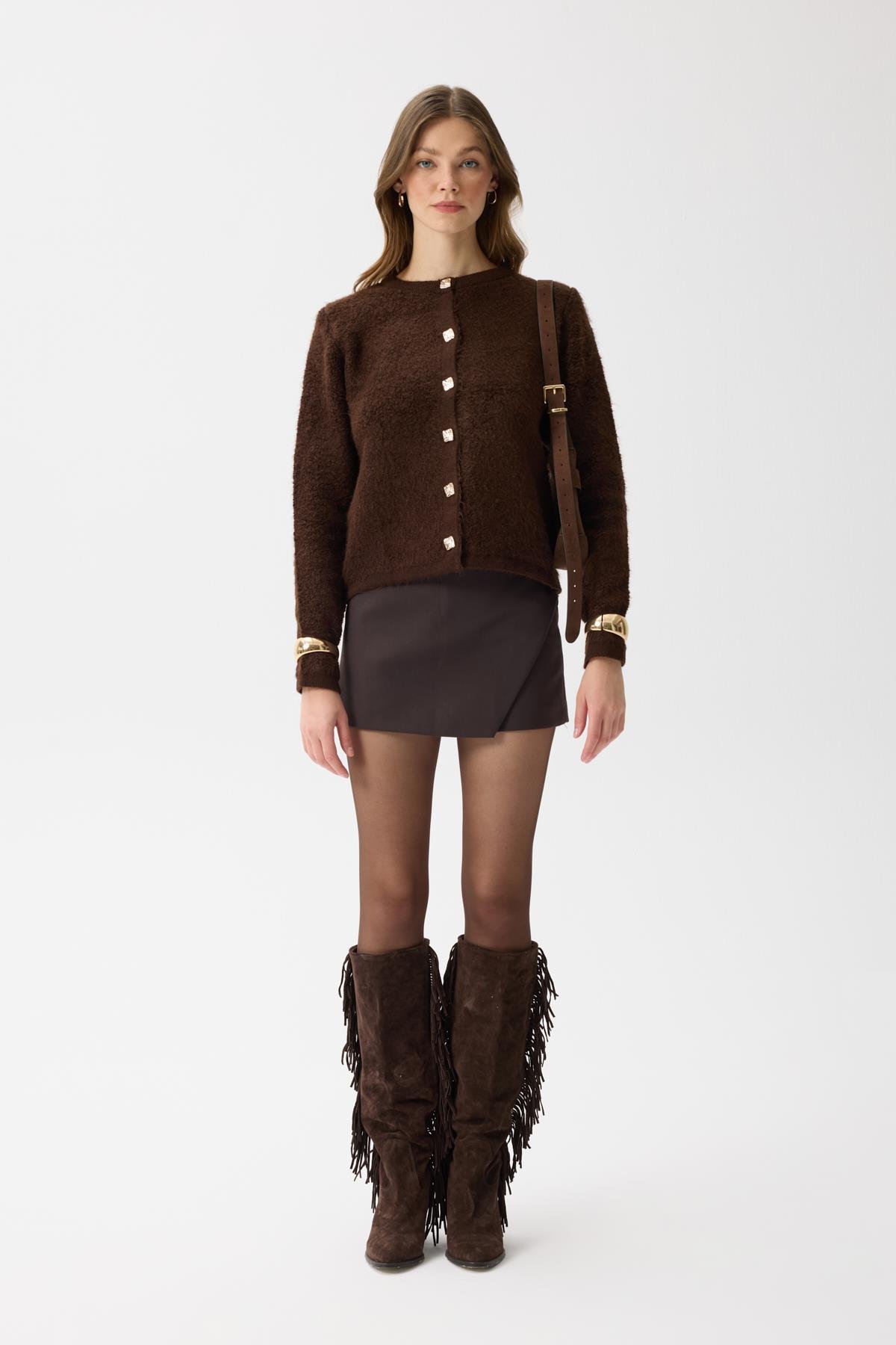 Morgana Buklet Dokulu Hırka - Kahverengi