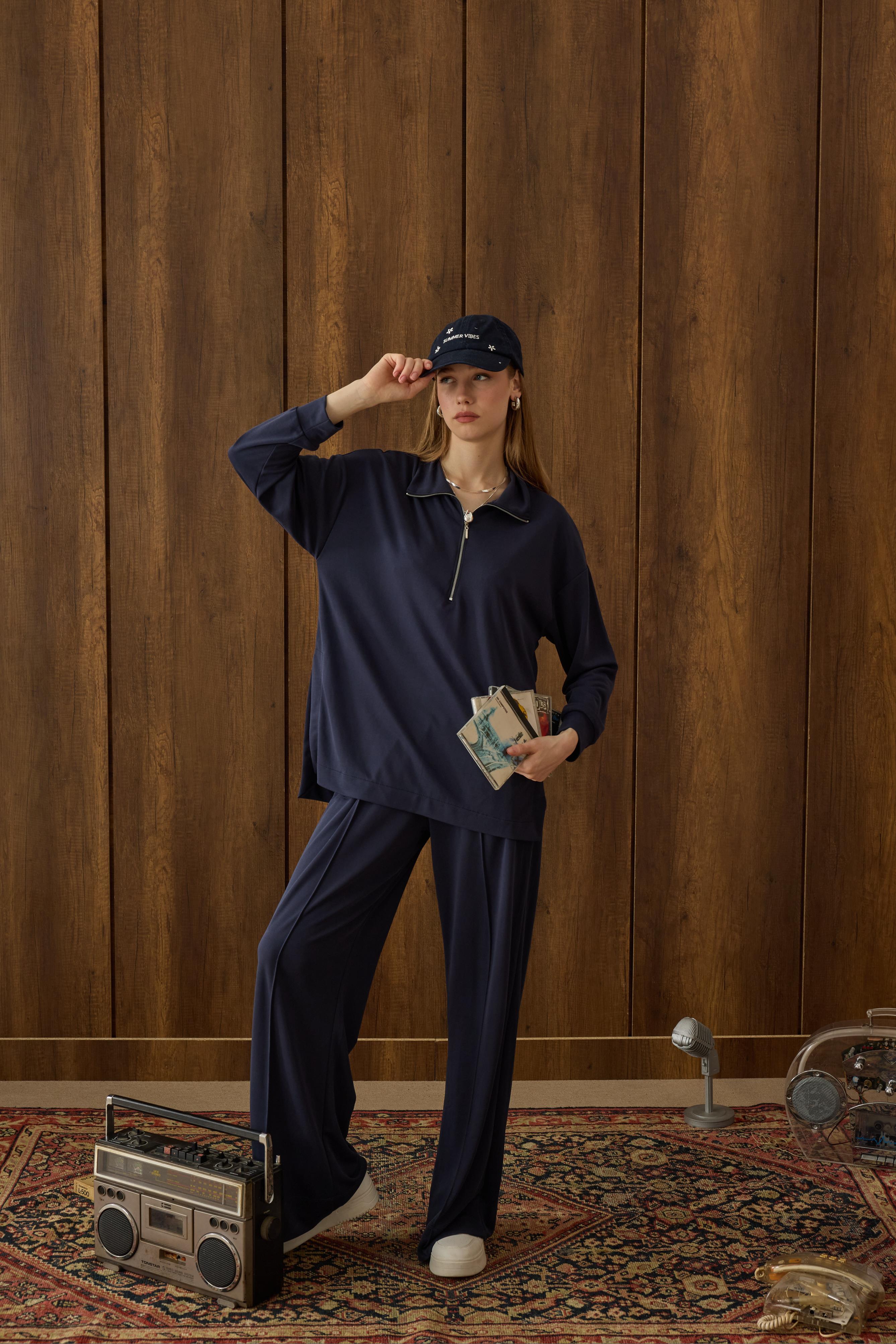 Relax Fermuarlı Takım, oversize yapısı ve kumaş rahatlığı ile konforu günlük hayata taşıyacak. Daha uzun boy tercih edenler için idealdir.