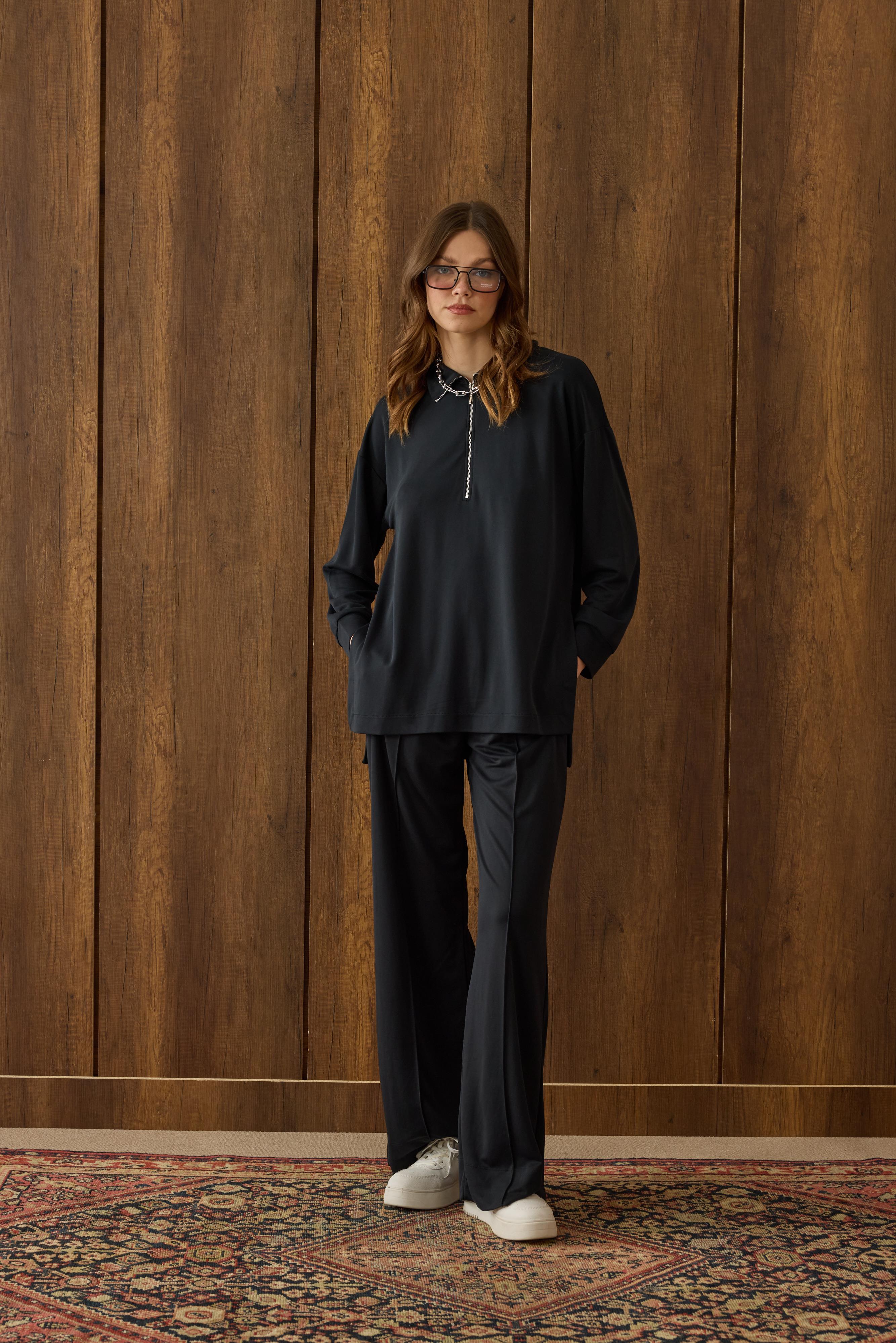 Relax Fermuarlı Takım, oversize yapısı ve kumaş rahatlığı ile konforu günlük hayata taşıyacak. Daha uzun boy tercih edenler için idealdir.