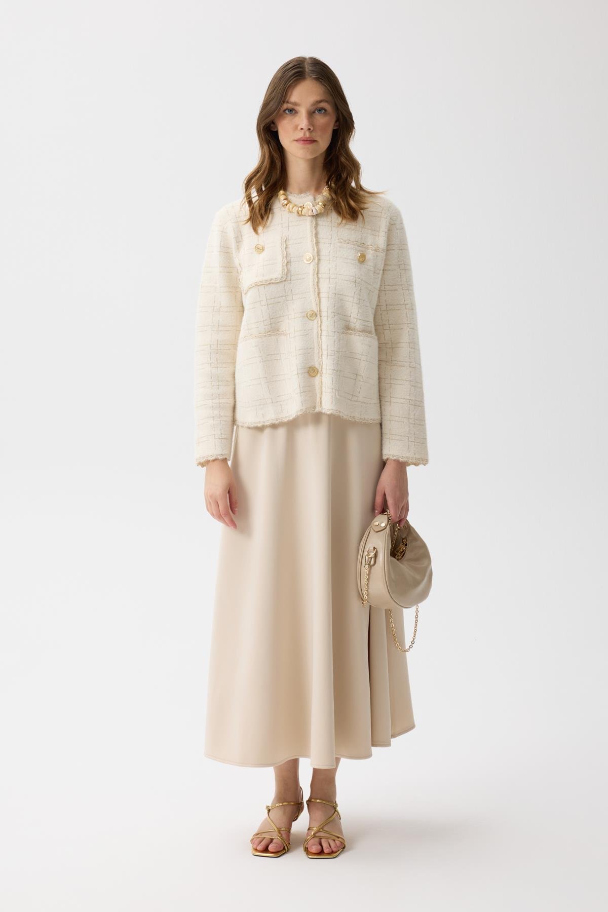 Günlük şıklığa uyumlu Rivera Gold Geçişli Angora Hırka, gold yansımaları ile göze çarpıyor. Özel günlerde de tercih edebileceğin gibi günlük hayatta kolaylıkla kombinleyebilirsin .